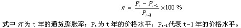 经济学中通常把通货膨胀率定义为从一个时期到另一个时期价格水平变动的百分比,并且用通货膨胀率来反映通货膨胀的程度。计算通货膨胀率的公式可以用下式表示: