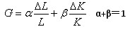 假如不存在生产要素效率的提高,经济增长完全依靠生产要素投入数量的增加,即在粗放型增长的条件下,经济增长率的高低就完全取决于生产要素增长率即劳动增长率和资本增长率的高低,于是就有下列方程式: