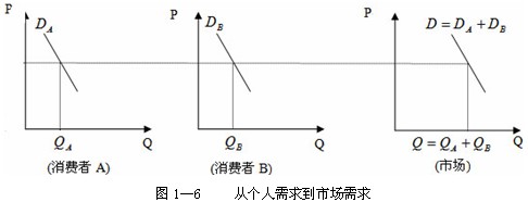 需求有个人需求与市场需求之分。个人需求也称个别需求,是指在一定时期和每一种给定的价格水平上消费者个人愿意并且能够购买的某种商品的数量;市场需求是指在一定时期和每一种给定的价格水平上所有消费者愿意并且能够购买的某种商品的数量。据此可以推知,某种商品的市场需求量一定是每一价格水平上所有个人需求量之和;而某种商品的市场需求必定是所有消费者个人对该种商品的需求之和,因此市场需求曲线也一定是所有个人需求曲线的水平加总。
