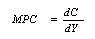 假设收入增量和消费增量均为极小时,边际消费倾向也可以表示为消费对收入的导数。即