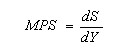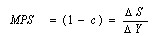 式中,C0为自发消费,是一个负值。负值的含义是,当收人为零时,消费者不得不动用过去的储蓄用于消费,故当前的储蓄即为负值。(1-c)为每增加或减少一个单位的收入所引致的储蓄的变动量,所以被称为边际储蓄倾向(marginal propensity to save),简称 MPS,它是一个大于零小于l的参数。边际储蓄倾向用公式表示即为:
