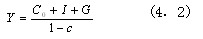 对上式进行移项整理,可以得出加入政府部门后的均衡产出公式,即((4.2)式: