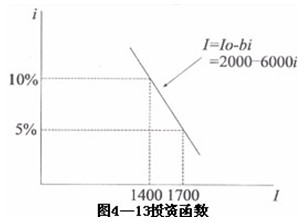 根据投资函数的性质,在一个纵轴表示利率,横轴表示投资的坐标中,可以得到一条斜率为负的投资曲线。如图4―13所示。