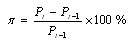 经济学中通常把通货膨胀率定义为从一个时期到另一个时期价格水平变动的百分比,并且用通货膨胀率来反映通货膨胀的程度。计算通货膨胀率的公式可以用下式表示: