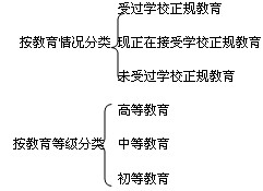 初等(或中等、高等)文化教育程度人口所占比重=受初等(或中等、高等)教育人口数/人口总数×100%