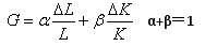 假如不存在生产要素效率的提高,经济增长完全依靠生产要素投入数量的增加,即在粗放型增长的条件下,经济增长率的高低就完全取决于生产要素增长率即劳动增长率和资本增长率的高低,于是就有下列方程式: