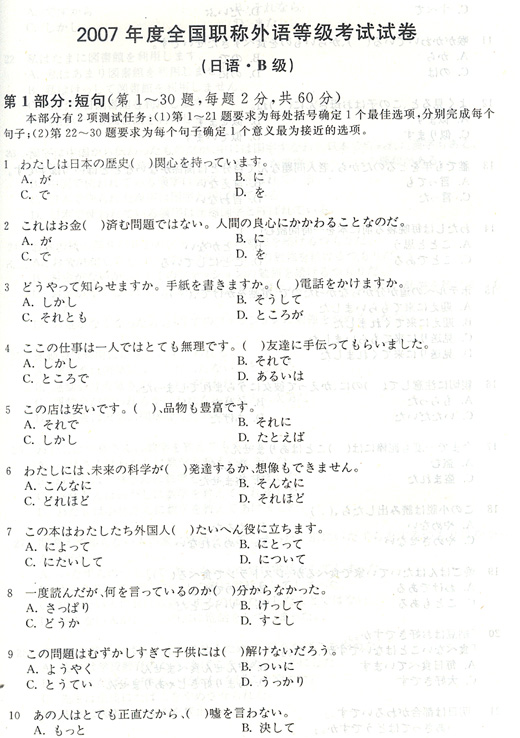 - 2009年职称日语考试C级真题(三)2011-07-28