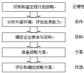 (1) 识别和鉴定现行的战略(必要性):识别当前是否存在相似战略,再鉴定其是否与当前的企业目标及环境相适应,是否存在缺陷,决定是否必须制定新战略。