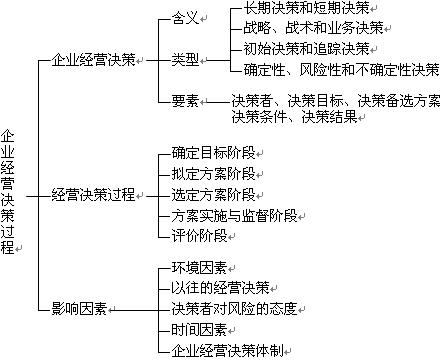 命题范围:企业决策(含义、类型、要素),企业经营决策过程、影响因素。