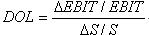 式中,DOL-营业杠杆系数;EBIT-营业利润,即息税前利润;DEBIT-营业利润的变动额;S-营业额;DS-营业额的变动额。