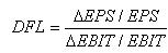 DFL=EBIT/(EBIT-I)=息税前利润/(息税前利润-债务年利息额)
