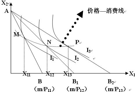 假定X2商品价格不变,收入不变,X1商品价格变化,分析价格变化对消费者均衡的影响,从而说明X1商品需求曲线的形成。