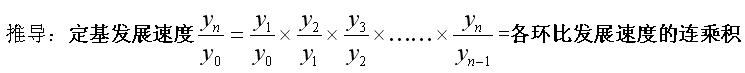 (2)定基发展速度:报告期水平与某一固定时期水平(通常是最初水平)的比值,用 表示,则有