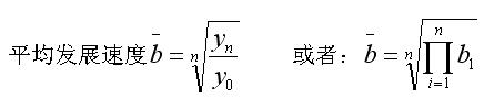 1、平均发展速度:反映现象在一定时期内逐期发展变化的一般程度。是一定时期内各期环比发展速度的序时平均数。