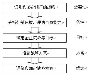 (1) 识别和鉴定现行的战略(必要性):识别当前是否存在相似战略,再鉴定其是否与当前的企业目标及环境相适应,是否存在缺陷,决定是否必须制定新战略。