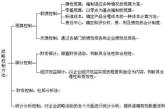 说明:多选题有可能出。一是战略控制方法包括哪些方法?二是前馈控制的具体方法包括哪些方法?三是财务审计具体方法?四是经济效益审计具体包括哪些方法?五是审计方法分类。