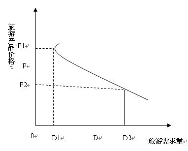 旅游需求曲线是一条自左上方向右下方倾斜、斜率为负的曲线。说明随着产品价格上涨,旅游需求量下降,呈反比关系。