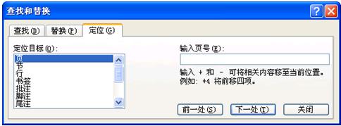◆在文档中快速定位:单击“编辑”菜单 的“定位”命令,弹出“查找和替换”对话框的“定位”选项卡,(也可通过Ctrl+F快捷键打开“查找和替换”对话框,单击打开“定位”选项卡)然后通过页号、节、行等条件来进行定位。
