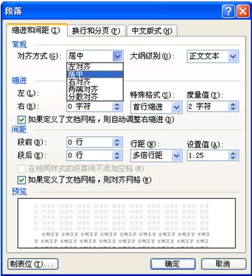 或者单击“格式”菜单中的“段落”命令,在弹出的“段落”对话框中的“对齐方式”中设置。