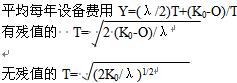 通过上述两个问题的计算,我们会发现最佳更新年限与设备费用最小的年限是吻合的。因此,只要把T求出来,再根据Y=(λ/2)T+(K0-O)/T就可以直接计算出Y的值,不用象上例从1~11年都计算一遍才能找到最小值。