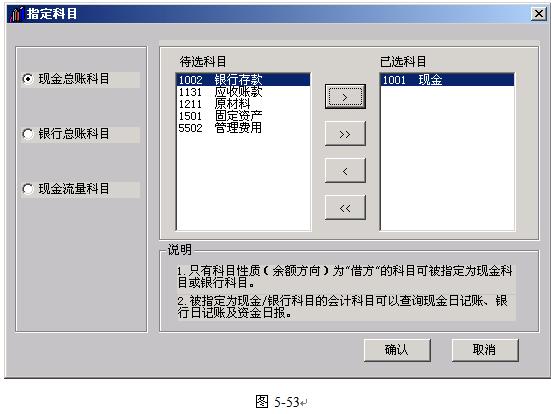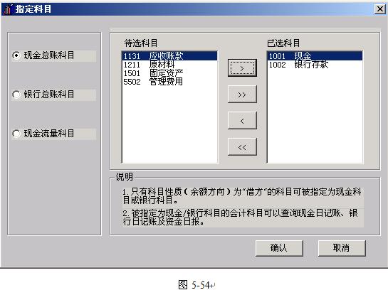 指定会计科目是指定出纳专管的科目。指定科目后,才能执行出纳签字,从而实现现金、银行账管理的保密性,也才能查看现金或银行存款日记账。
