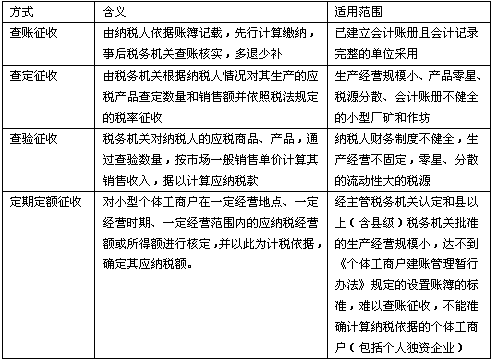 A查账征收 B 查定征收 C 查验征收 D 定期定额征收
