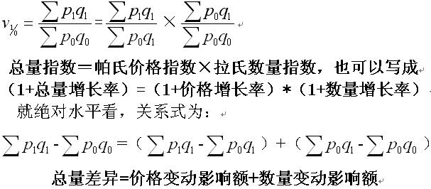 2.指数体系:由总量指数及其若干个因素指数构成的数量关系式。