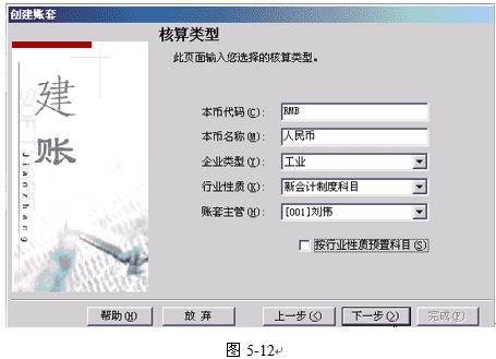 5.行业性质:系统按照所选择的行业性质预置科目,必须选择输入。