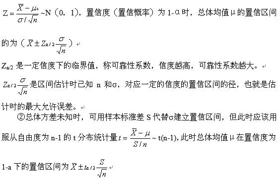 (2)区间估计。区间估计是用一个区间估计总体未知参数。
