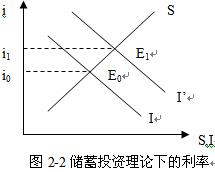 古典学派认为,利率决定于储蓄与投资的相互作用。储蓄(S)为利率(i)的递增函数,投资(I)为利率的递减函数。