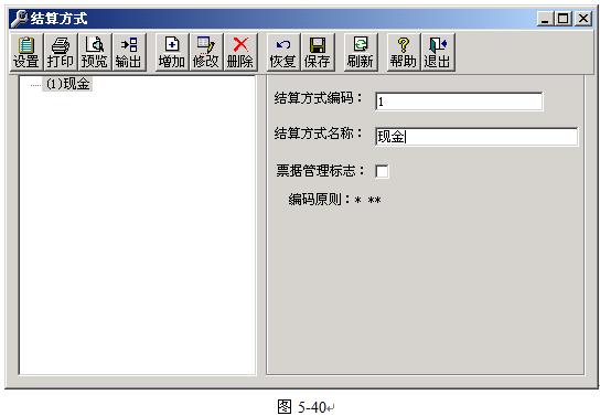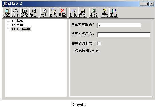 结算方式设置主要包括:结算方式编码、结算方式名称、票据管理标志等。票据管理标志是软件为辅助出纳对银行结算票据而设置的功能,类似与手工系统中的支票登记簿的管理方式。