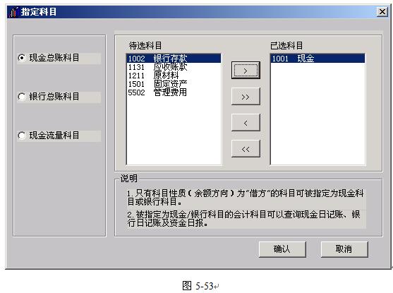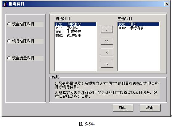 指定会计科目是指定出纳专管的科目。指定科目后,才能执行出纳签字,从而实现现金、银行账管理的保密性,也才能查看现金或银行存款日记账。