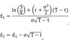 其中,S为股票价格,X为期权的执行价格,T-t为期权期限,r为无风险利率,e为自然对数的底(2.718), 为股票价格波动率。