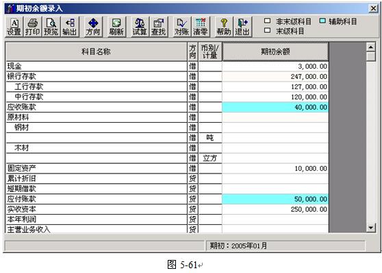期初余额的录入分两部分:总账期初余额录入、辅助核算科目期初余额录入。