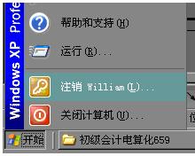 如果一台计算机的用户不止一个人,可以让其他用户使用计算机中的资料。此时,单击“开始”,选择菜单中的“注销”,将显示“注销”对话框