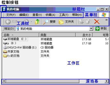 (1)窗口的组成:以“我的电脑”窗口为例。