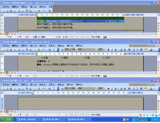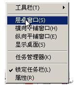 排列窗口:除了用移动改变窗口大小的方式排列窗口外,还可以用命令的方式来排列窗口。方法是,在任务栏空白处单击鼠标右键,将打开一个快捷菜单,菜单中提供的所有窗口排列命令。