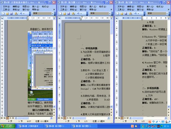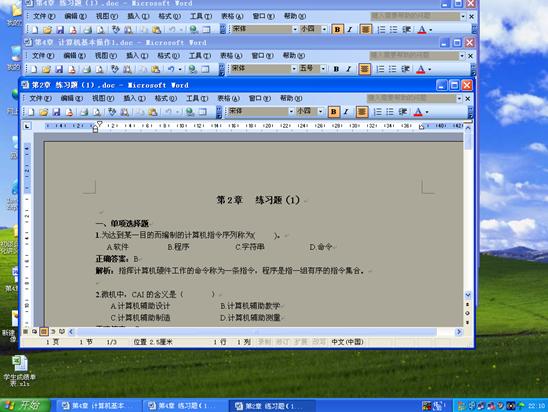 窗口之间的切换:如果同时打开多个窗口,需要在多个窗口之间进行切换,通常的操作是单击“任务栏”上指定的任务按钮,即打开相应的任务窗口,使之成为当前的活动窗口。如果要切换的窗口显示在桌面上,只需将鼠标指向该窗口的任何位置,单击鼠标,即可将此窗口切换为当前活动窗口。