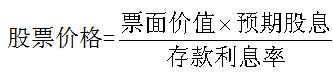 股票价格的高低与预期股息成正比,与银行存款利息率成反比。