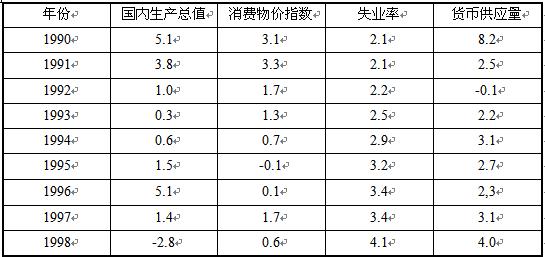 1990年以来日本主要经济指数 单位:%