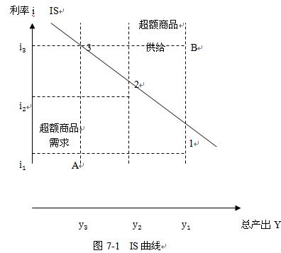 商品市场的均衡要求资本的供求相等,即S=I。储蓄(S)构成资本的供给,投资(I)构成资本的需求。由于储蓄是收入(Y)的增函数,投资是利率的减函数。所以,IS曲线表示在不同的利率与收入水平组合下,商品市场均衡(S=I)点的轨迹。如图7-1所示。