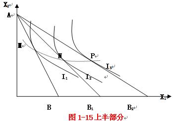 (1)MNP连接起来得到一条价格-消费曲线,表示消费者偏好和收入不变时,与一种商品价格变化相联系的两种商品在不同价格下的效用最大化组合。