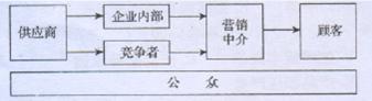 1、企业微观市场营销环境的构成:企业内部其他的职能部门、供应商、营销中介机构、顾客、竞争者和各种类型的公众,这些微观环境因素对企业制定、实施营销策略可能产生的影响