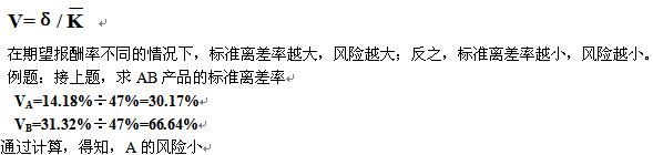 例题:接上题,若A的风险报酬系数为5%,B的为9%,无风险报酬率为11%,求风险报酬率和投资报酬率。