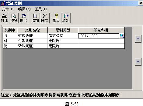 (二)某些类别的凭证在制单时对科目有一定限制,本系统提供五种限制类型: