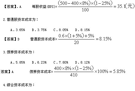 2.该公司目前息税前利润(EBIT)为500万元,适用的所得税税率为25%,采用市场价值作为计算各种资本比例的价值基础。