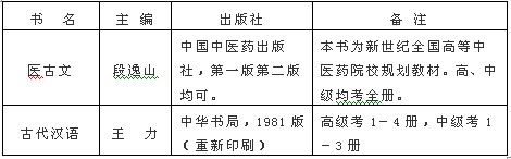 我省自行组织命题的医古文、古汉语考试教材版本为: