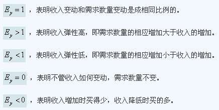 (1)收入弹性大于1的商品,称为“高档品”,小于1的称为“必需品”。