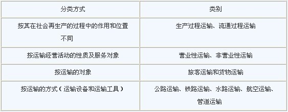 表1-2 运输的分类