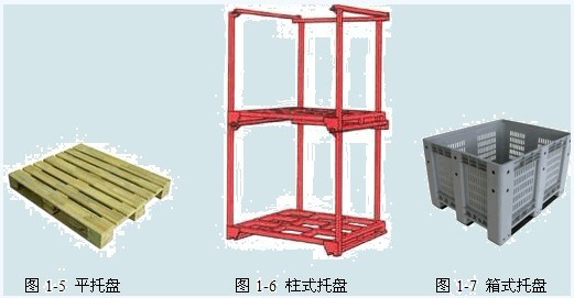 (1)托盘:与叉车同时发展起来的,便于叉车和堆垛机操作,大大提高了装卸机械化水平。